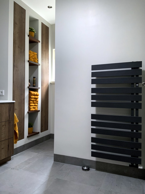 Prachtig resultaat geleverd met volledig op maat gemaakte inloopkast inclusief verlichting op sensor bij binnenkomst en vloerverwarming.